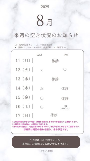 すずらん整骨院は完全予約制ではありませんが、来院の際には"お問合わせ(ご予約)" される事をおすすめしています。