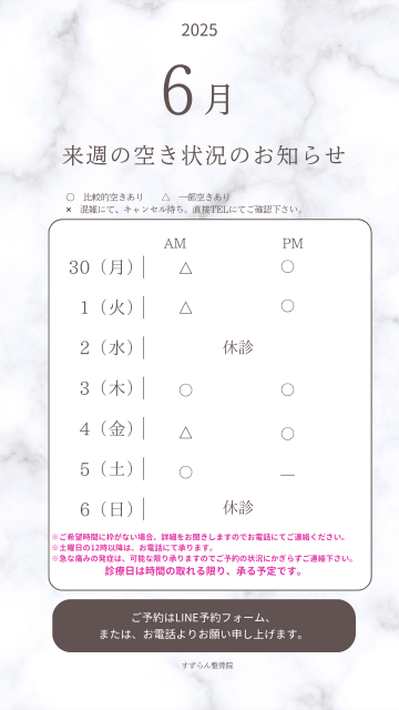 すずらん整骨院は完全予約制ではありませんが、来院の際には"お問合わせ(ご予約)"