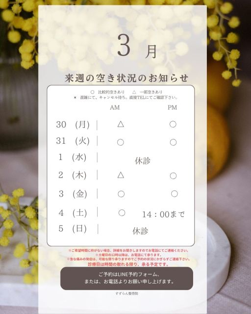 すずらん整骨院は完全予約制ではありませんが、来院の際には"お問合わせ(ご予約)"