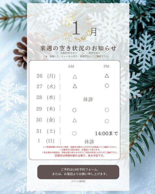 (但し、急患などで状況が変化する場合もございますので、ご容赦下さい。)