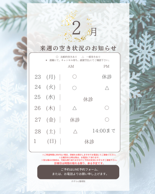 (但し、急患などで状況が変化する場合もございますので、ご容赦下さい。)