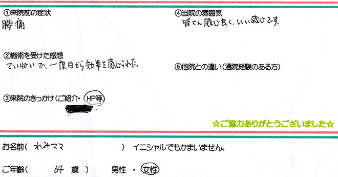 医療機関で薬や注射、整骨院でマッサージを受けていたが、変化がなく当整骨院へ来られた方の症状が、改善されていくこともございます。