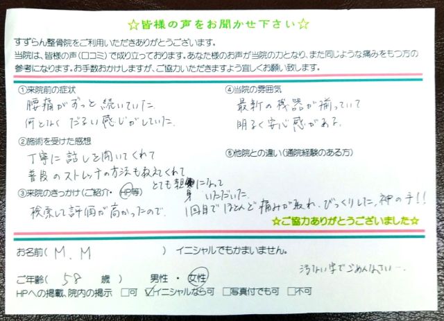 【名前】M・М 【年齢】58 【性別】女性 【HPへの掲載】イニシャルなら可