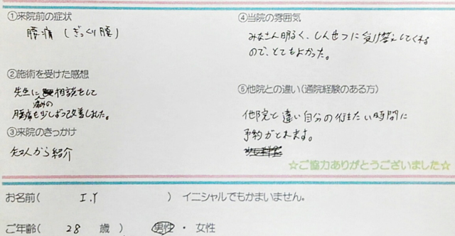 先生に痛みの相談をして腰痛も少しずつ改善しました。 - 来院のきっかけ