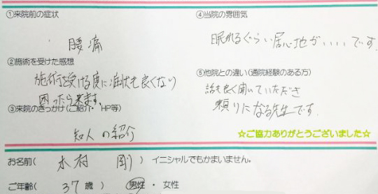 腰痛。 - 施術を受けた感想