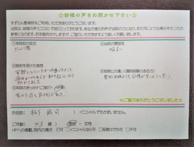 名前 松下誠司様 年齢43歳 男性