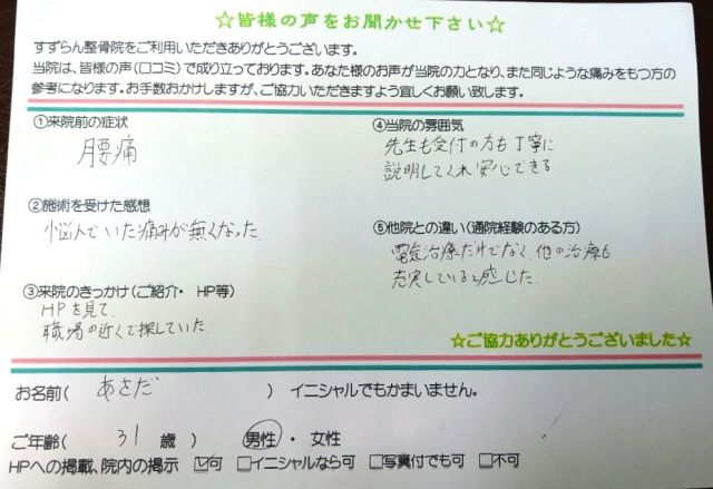 【名前】あさだ 【年齢】31 【性別】男性 【HPへの掲載】可