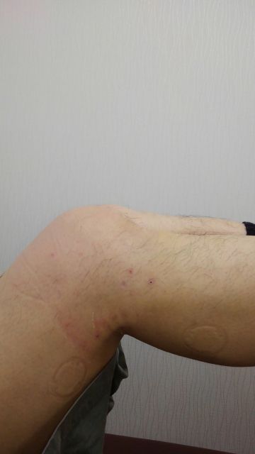 下の画像は、先日来られた患者さんのものです。膝より下の部分が落ち込んでいるようにみえますね。これは膝関節のある靭帯を損傷した兆候です。また、半月板を損傷した方も、先日こられました。