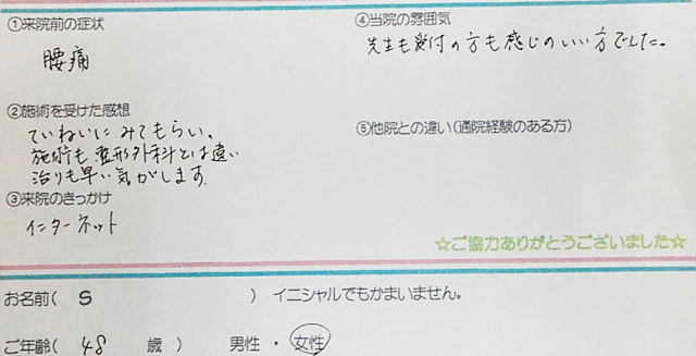腰痛。 - 施術を受けた感想