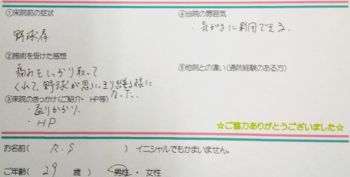 野球肩。 - 施術を受けた感想