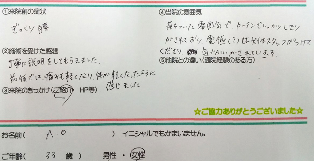 ぎっくり腰。 - 施術を受けた感想