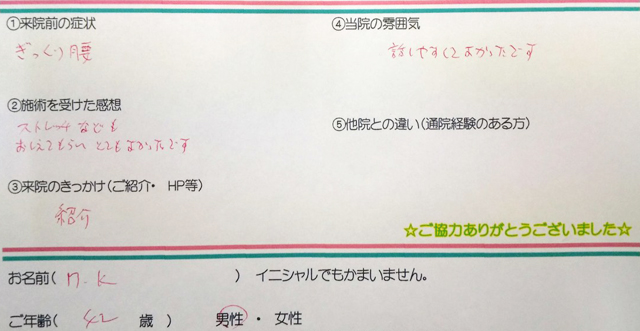 ストレッチなども教えてもらいとてもよかったです。 - 来院のきっかけ