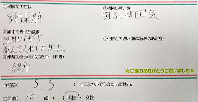 野球肘 - 施術を受けた感想