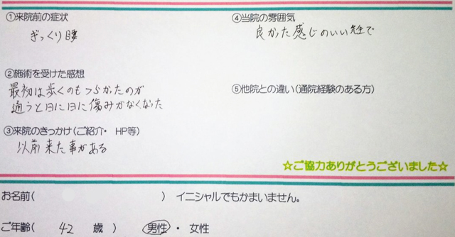 ぎっくり腰。 - 施術を受けた感想