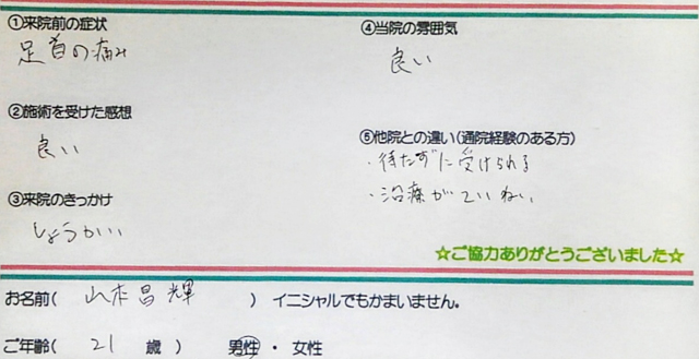 施術時間が長く、些細な身体の不調にも丁寧に対応頂けました。