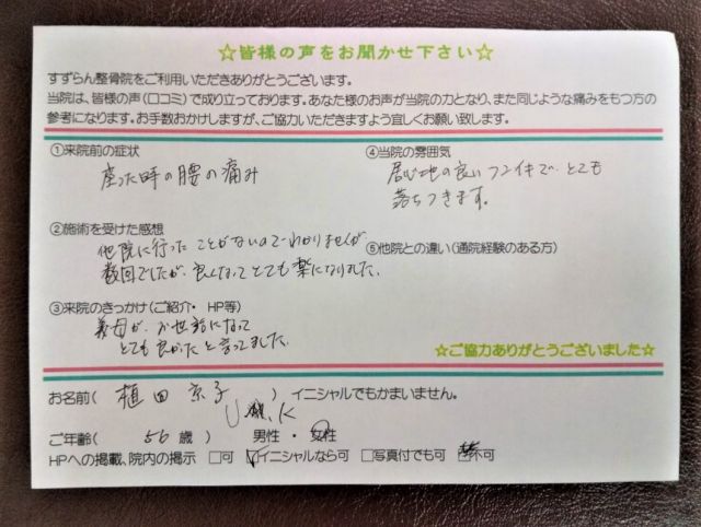他院に行ったことがないのでわかりませんが、数回でしたが良くなってとても楽になりました。